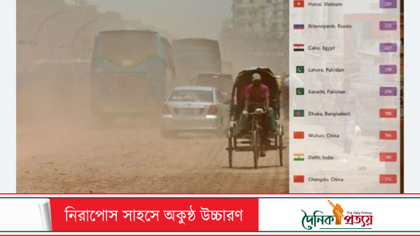 ওয়েব ডেস্ক: শুষ্ক ও ঠান্ডা আবহাওয়ায় বাতাসে ক্ষতিকর ধূলিকণার ঘনত্ব বেড়ে যাওয়ায় আজও বিশ্বের দূষিত শহরের তালিকায় উপরের দিকেই রয়েছে ঢাকা। আন্তর্জাতিক মানদণ্ড অনুযায়ী, আজ (শুক্রবার) ঢাকার বাতাসের মান ‘অস্বাস্থ্যকর’ হিসেবে চিহ্নিত করা হয়েছে। আন্তর্জাতিক বায়ুমান পর্যবেক্ষণকারী প্রতিষ্ঠান আইকিউএয়ারের তথ্যানুযায়ী, শুক্রবার (৬ ফেব্রুয়ারি) সকাল সাড়ে ১০টার দিকে রাজধানী ঢাকার বায়ুর মান সূচক