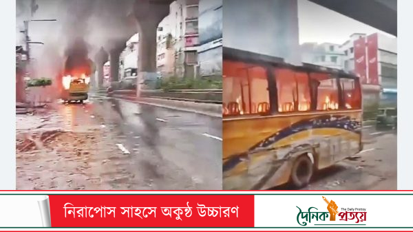 ওয়েব ডেস্ক: রাজধানীর মিরপুরের সেনপাড়া এলাকায় আলিফ পরিবহনের একটি যাত্রীবাহী বাসে আগুন দিয়েছে দুর্বৃত্তরা। শুক্রবার (৩ অক্টোবর) সকাল ৭টা ২৩ মিনিটে আগুন লাগার খবর পেয়ে ৭টা ৩৫ মিনিটে আগুন নিয়ন্ত্রণে